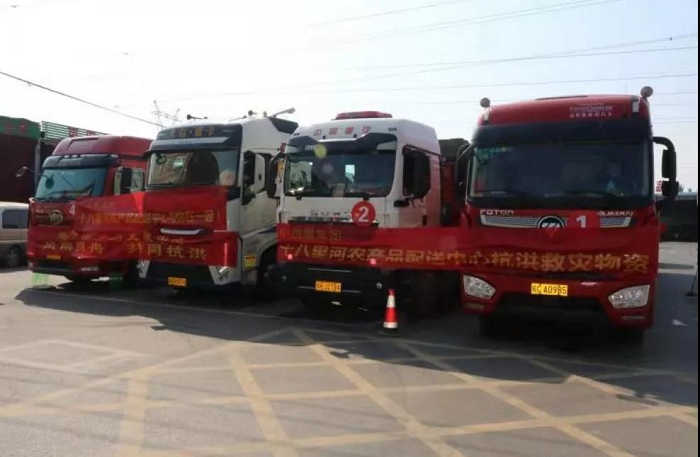 7月26日上午,鄭州市市場發(fā)展中心聯(lián)合十八里河農(nóng)產(chǎn)品配送中心和中歐商學(xué)院舉行賑災(zāi)物資捐贈儀式,向我市各地受災(zāi)嚴(yán)重地區(qū)捐贈礦泉水、牛奶、面包、方便面等應(yīng)急生活物資。