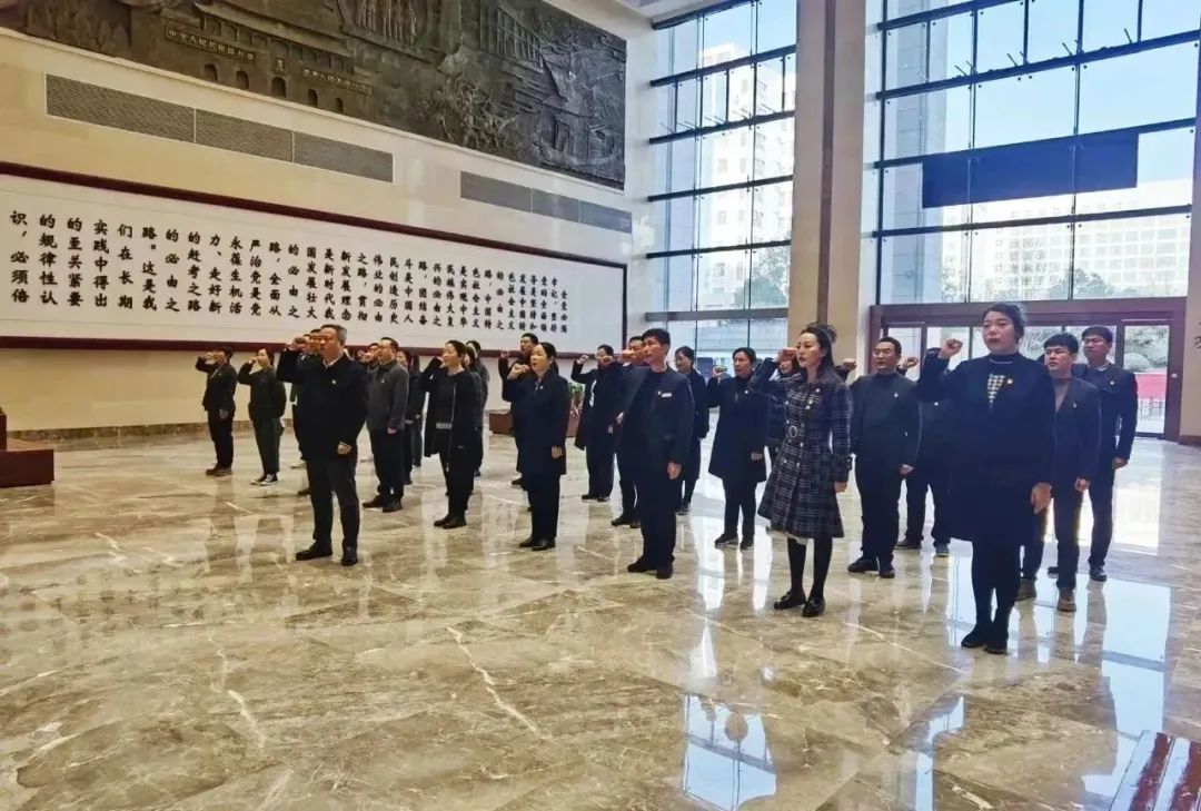 參觀學習開始前,公司黨委副書記、副總經(jīng)理成小俊同志帶領全體黨員面對鮮紅的黨旗,鄭重肅立,高舉右拳,以集體宣誓的方式重溫入黨誓詞。一句句鏗鏘有力的誓詞,表達著對黨的絕對忠誠和為黨的事業(yè)奮斗終身的決心。
