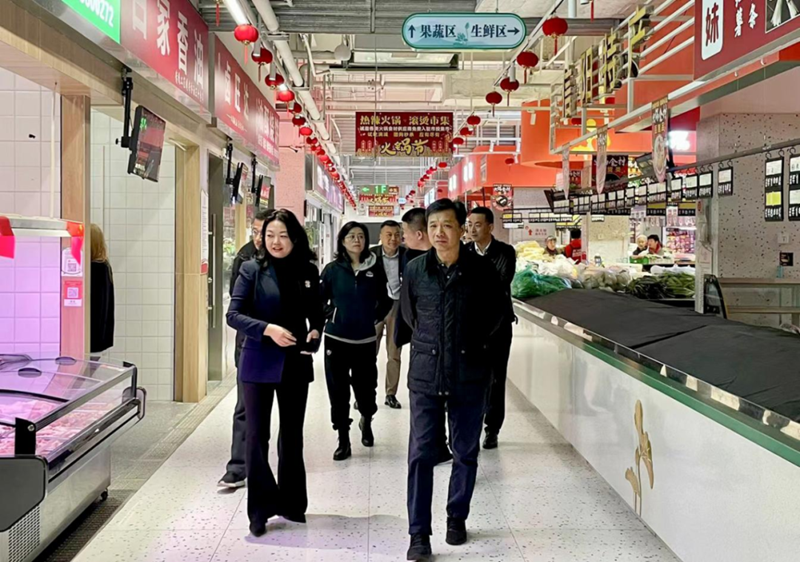 考察團一行在項目負責人的帶領下還參觀了公司智能生鮮柜投放點以及市投集市未來路市場,并就市場運營模式、功能定位、特色優(yōu)勢等方面進行深入交流。