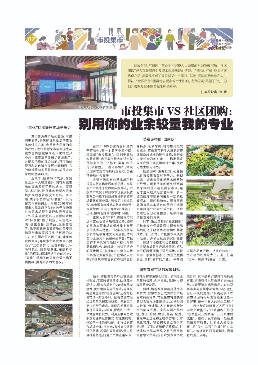 在2020年第48期專題中,我們通過鄭州市市場(chǎng)發(fā)展中心的推薦,采訪了鄭州農(nóng)貿(mào)市場(chǎng)里的標(biāo)桿企業(yè),很多讀者對(duì)市投集市產(chǎn)生了濃厚的興趣,什么是國(guó)有農(nóng)貿(mào)市場(chǎng)?菜市場(chǎng)的公益性指的是啥?市投集市踐行標(biāo)準(zhǔn)化有什么突出特點(diǎn)?
